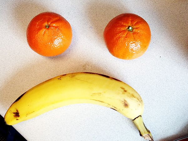 5) my daughter was in my office and arranged my fruit to let me know how she felt about her organic chemistry exam