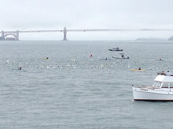 Last Sunday I was on a ferry at Alcatraz, watching my friend Ingrid jump into a 62 degree San Francisco bay with 400 other wet-suit clad athletes and about 25 without wet suits. She was participating in the Escape from the Rock duathlon, swimming 1.5 miles from Alcatraz to Aquatic Park, San Francisco and then running 7 miles. I was her support crew.