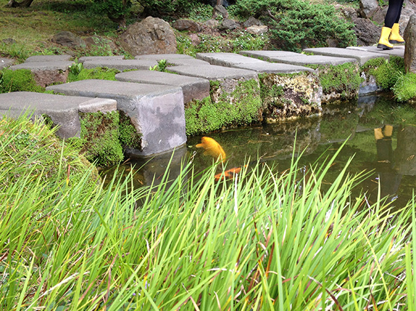 4) gold fish and yellow boots, japanese tea garden in golden gate park