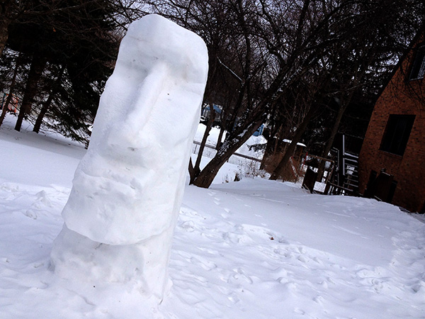 6) easter island head, one of the many snow sculptures i encountered on my walks with vincent this winter