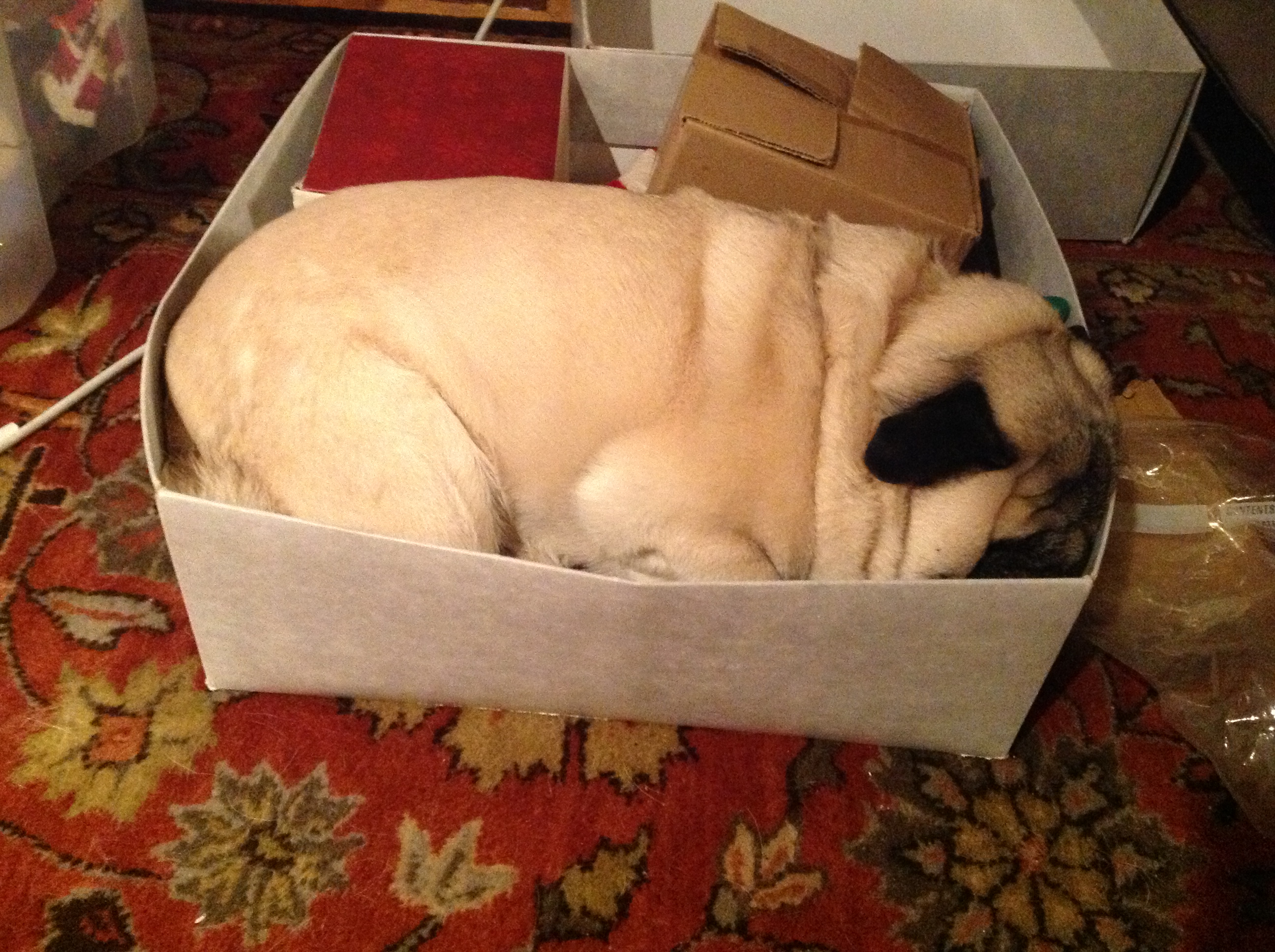 And even though this pug will make you laugh every day, will bring out a tenderness in your huge, teenage son that will make your heart surge, will sometimes be the only comfort that can reach your teenage daughter dealing with the complex passage into adulthood, and whose every cell of his little loaf-of-bread body expresses absolute joy at your return home at the end of the day…I really mean it, Don’t get a pug.